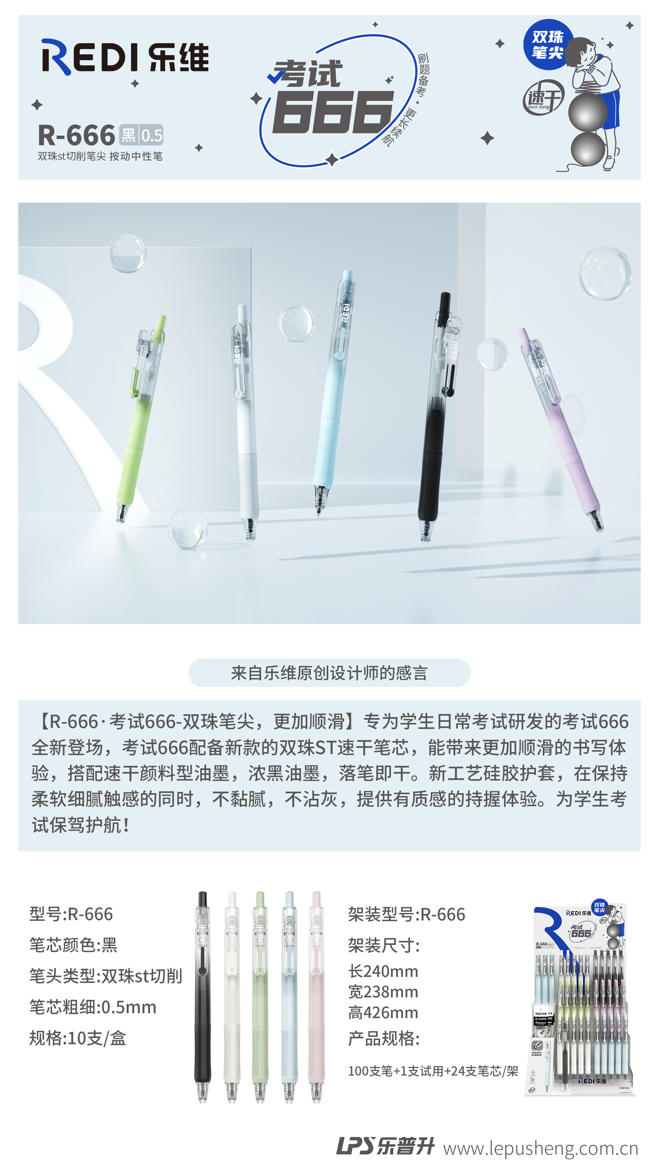 产品描述:考试专用,双珠ST速干笔芯